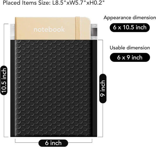 Bubble Mailers 6x10" 100 Pack Black Padded Envelopes Usable Size 6x9"